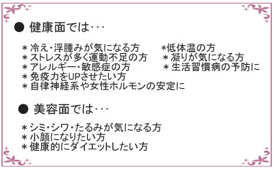 血液の流れを良くし、皮膚や手足など身体の隅々まで栄養や酸素を届けエイジレスな身体へと導きます。